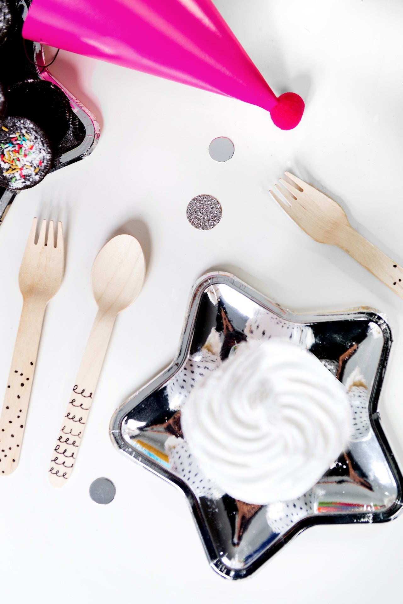 This wooden cutlery set featuring a fun scribble patter is perfect for your everyday celebration. Be it a back to school celebration, a graduation party, or a Halloween bash, they are simply perfect for your party table.