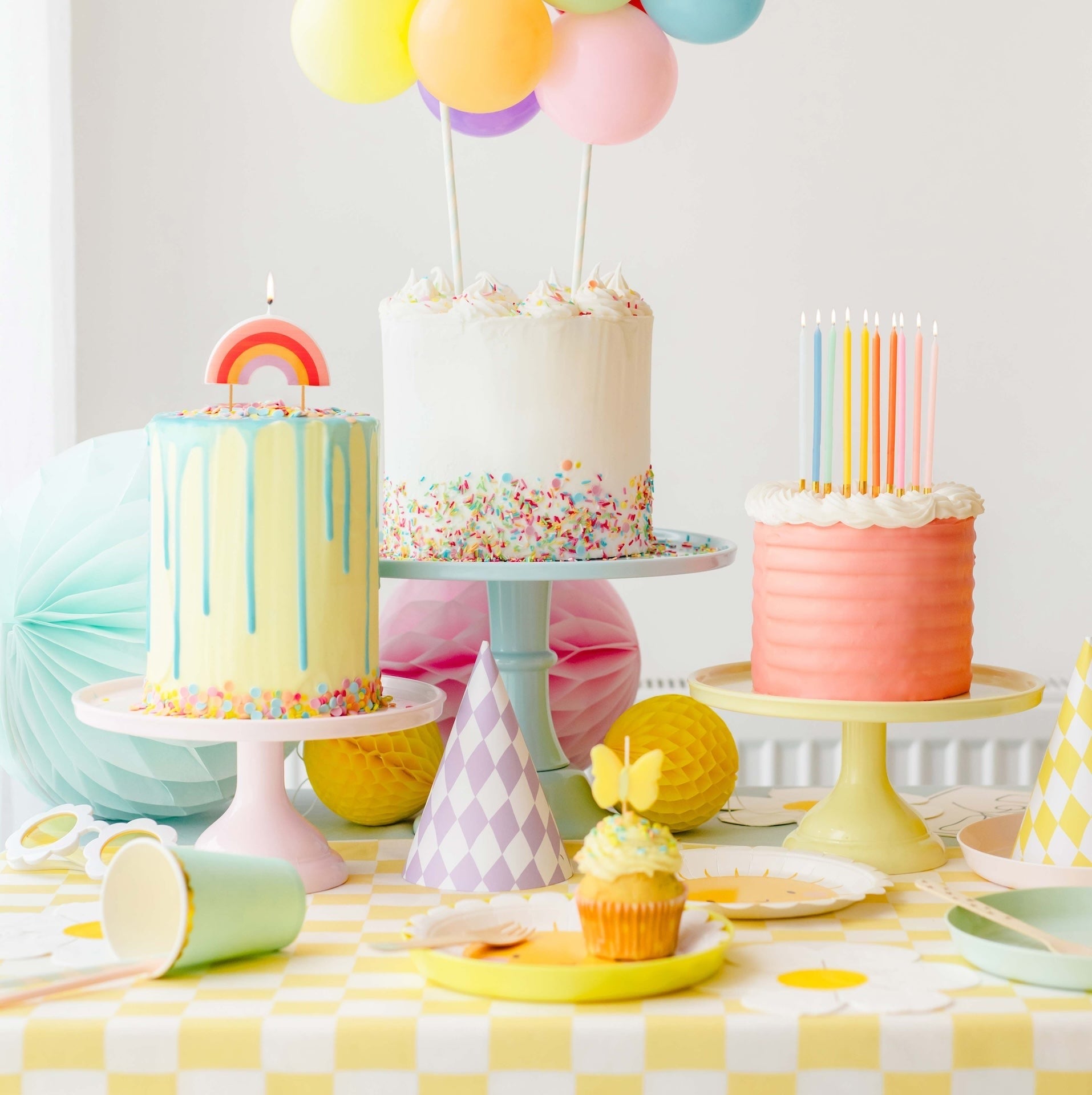Make a magical wish with this colorful birthday candle set. The pack includes 10 slim style colorful candles with gold ends to go with your cakes or cupcakes.