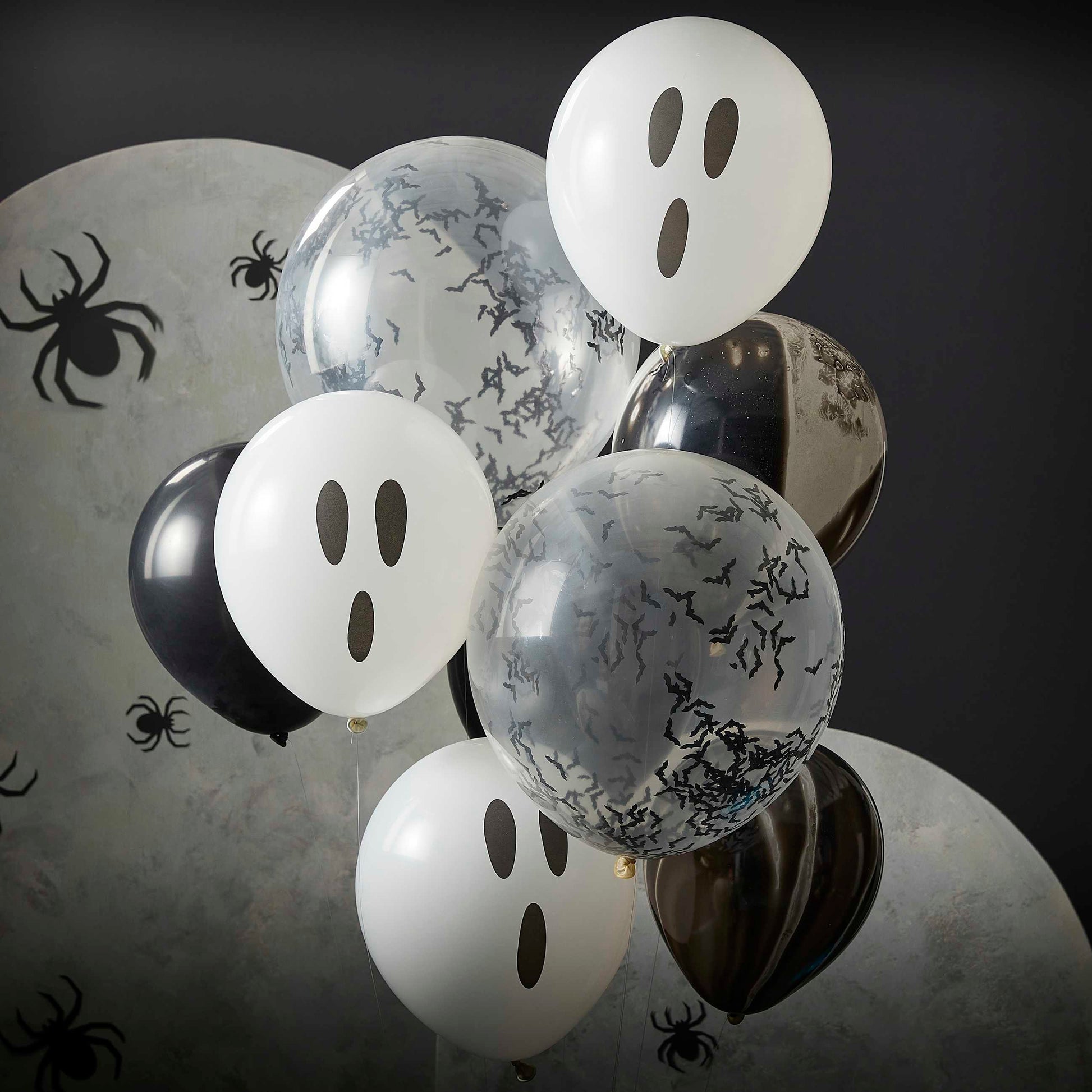 GHOSTS, CONFETTI BATTS AND BLACK MARBLE BALLOON BUNDLE [9 PCS]