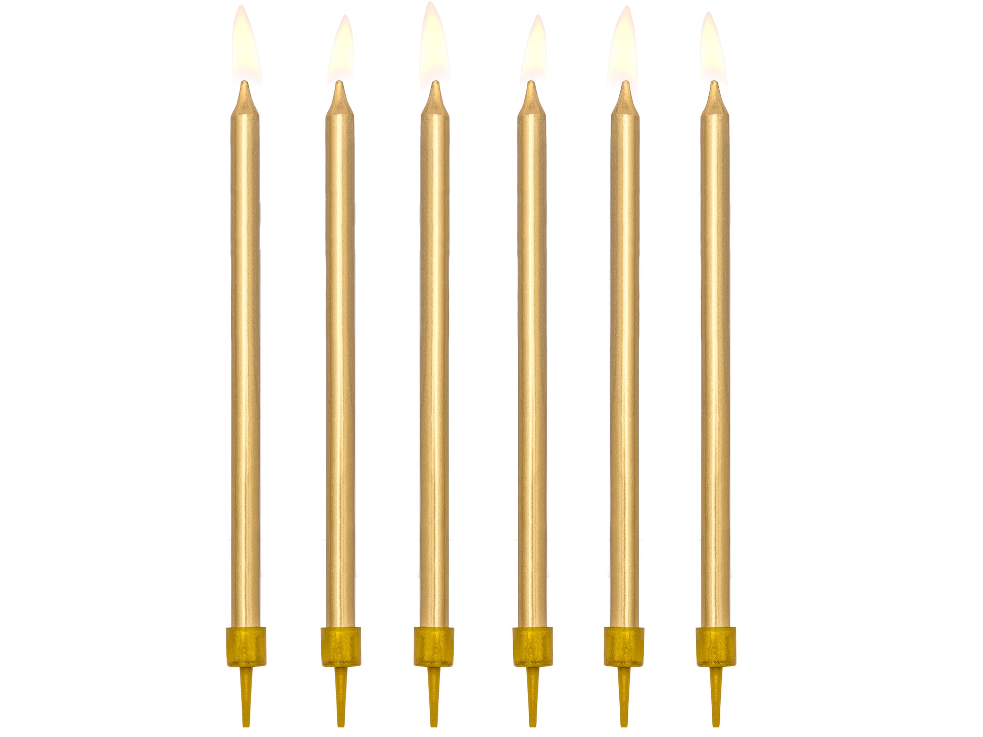 Make a magical wish with this pretty gold birthday candle set. The pack includes 12 slim style candles in gold to go with your cakes or cupcakes.