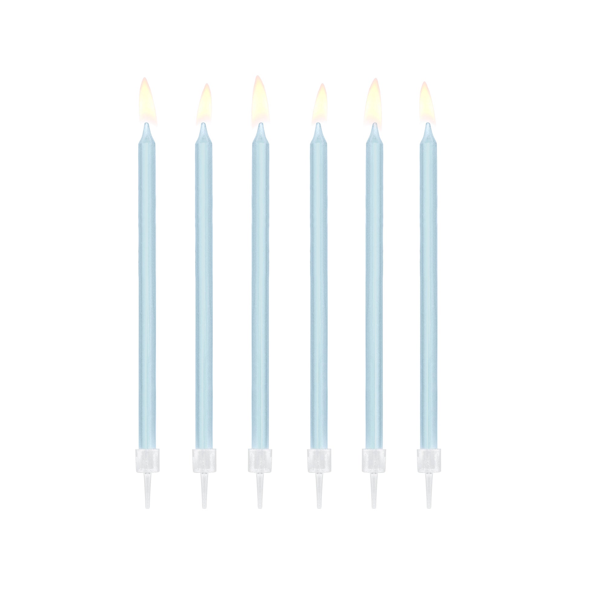 Make a magical wish with this pretty light blue birthday candle set. The pack includes 12 slim style candles in light blue to go with your cakes or cupcakes.