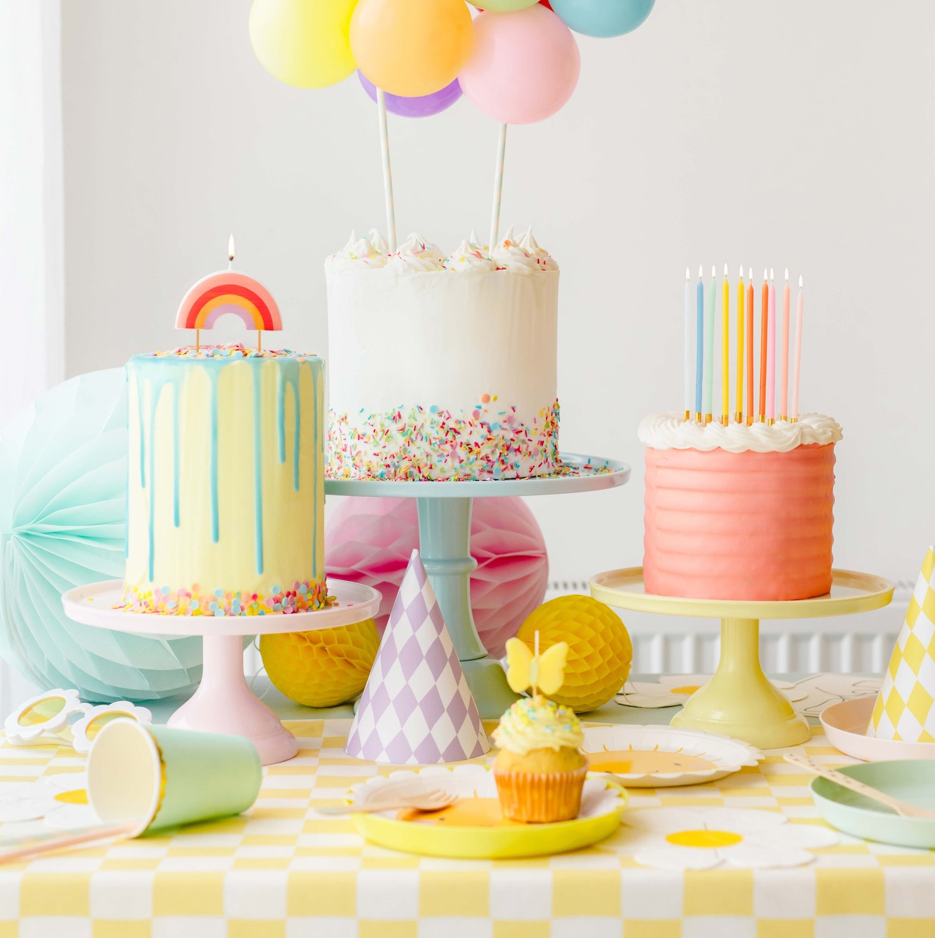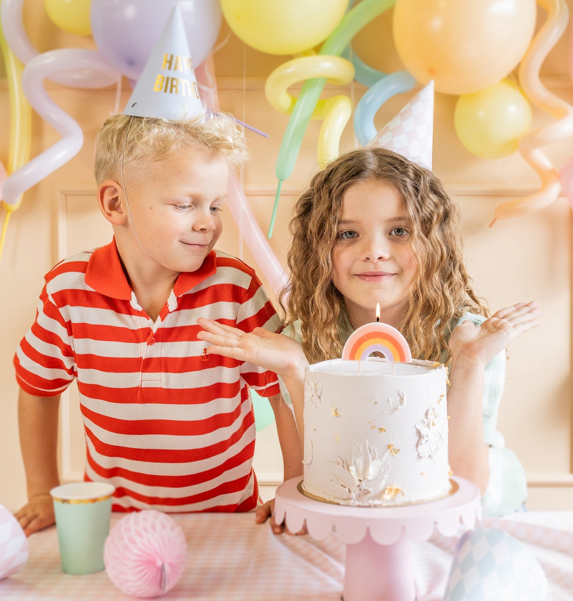 This rainbow candle is a must for any birthday cake. Featuring a sweet pastel color palette.