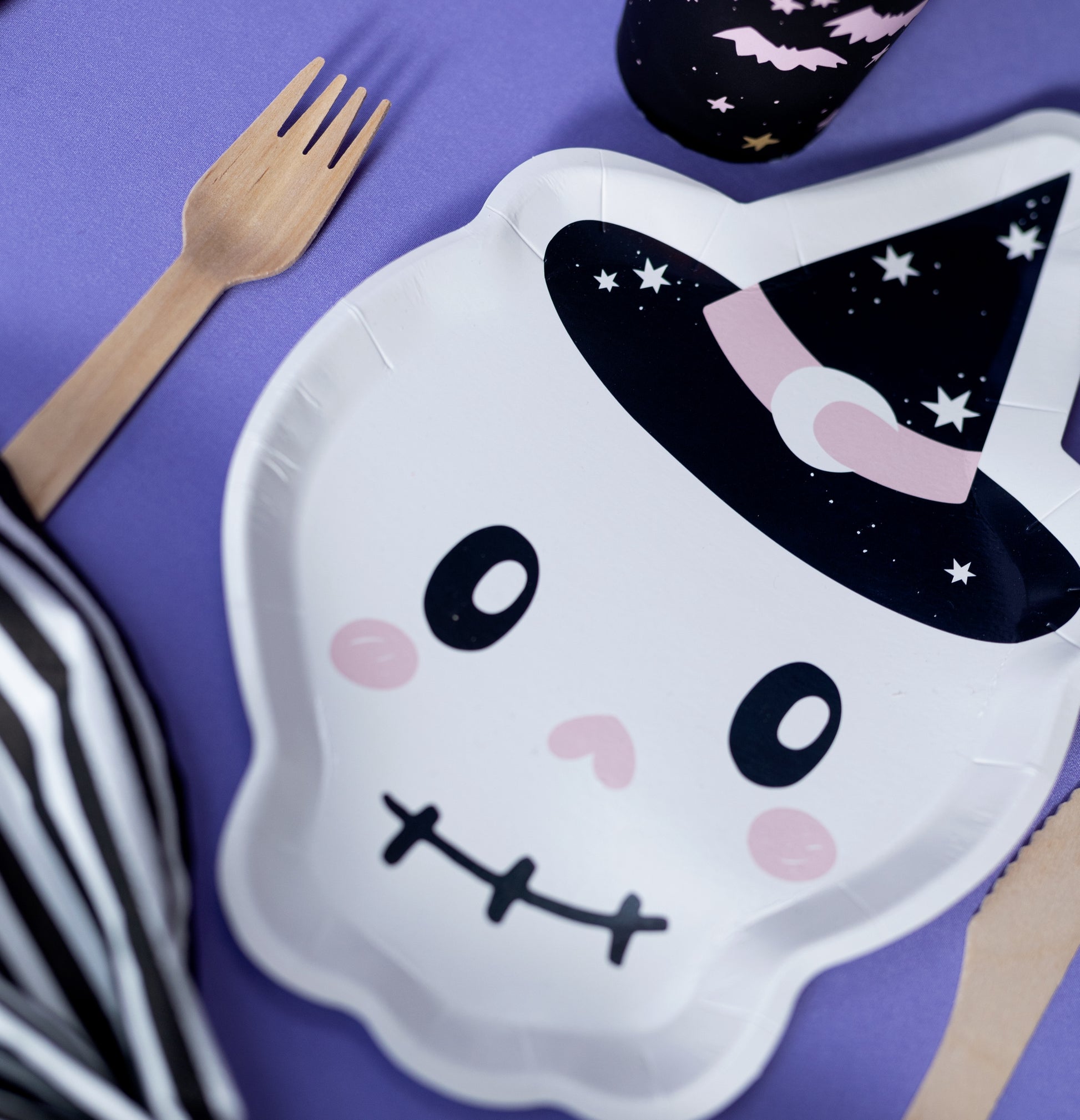 Make spooky season dinner parties fun with these adorable Pink Skull Plates! Die-cut for a perfect skull shape!