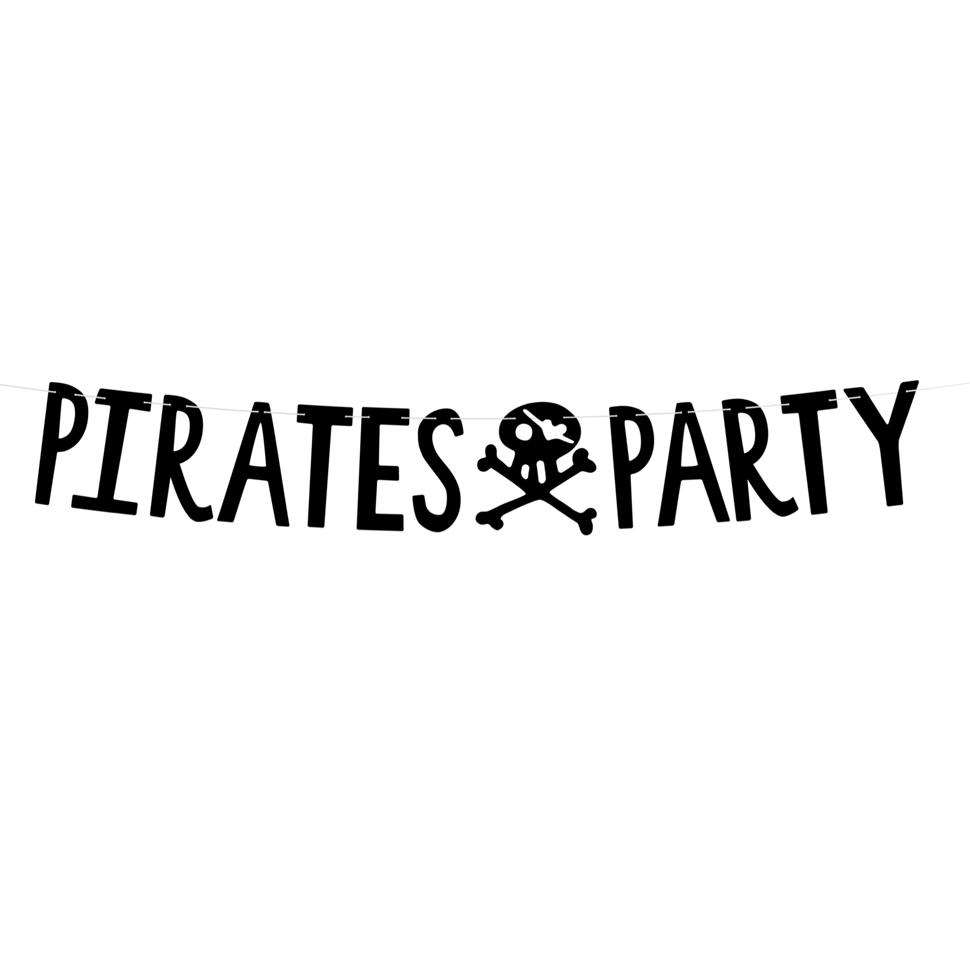 Get ready to walk the plank with this fun Pirate Banner. Featuring a black banner with the text 'Pirates Party' with a skull and crossbones in the center. A perfect decoration for a pirate theme party.