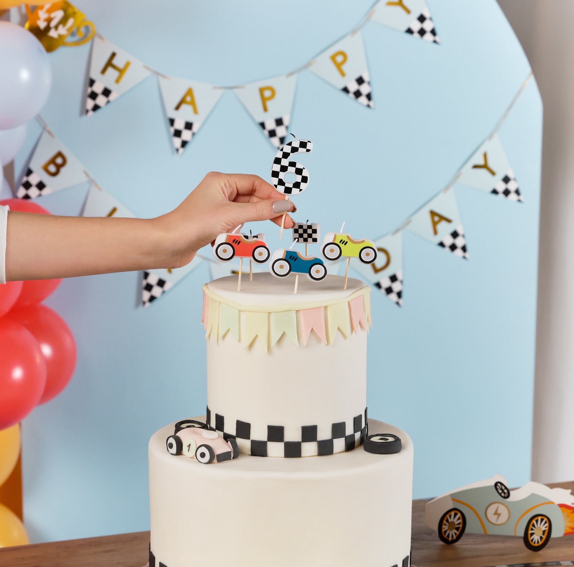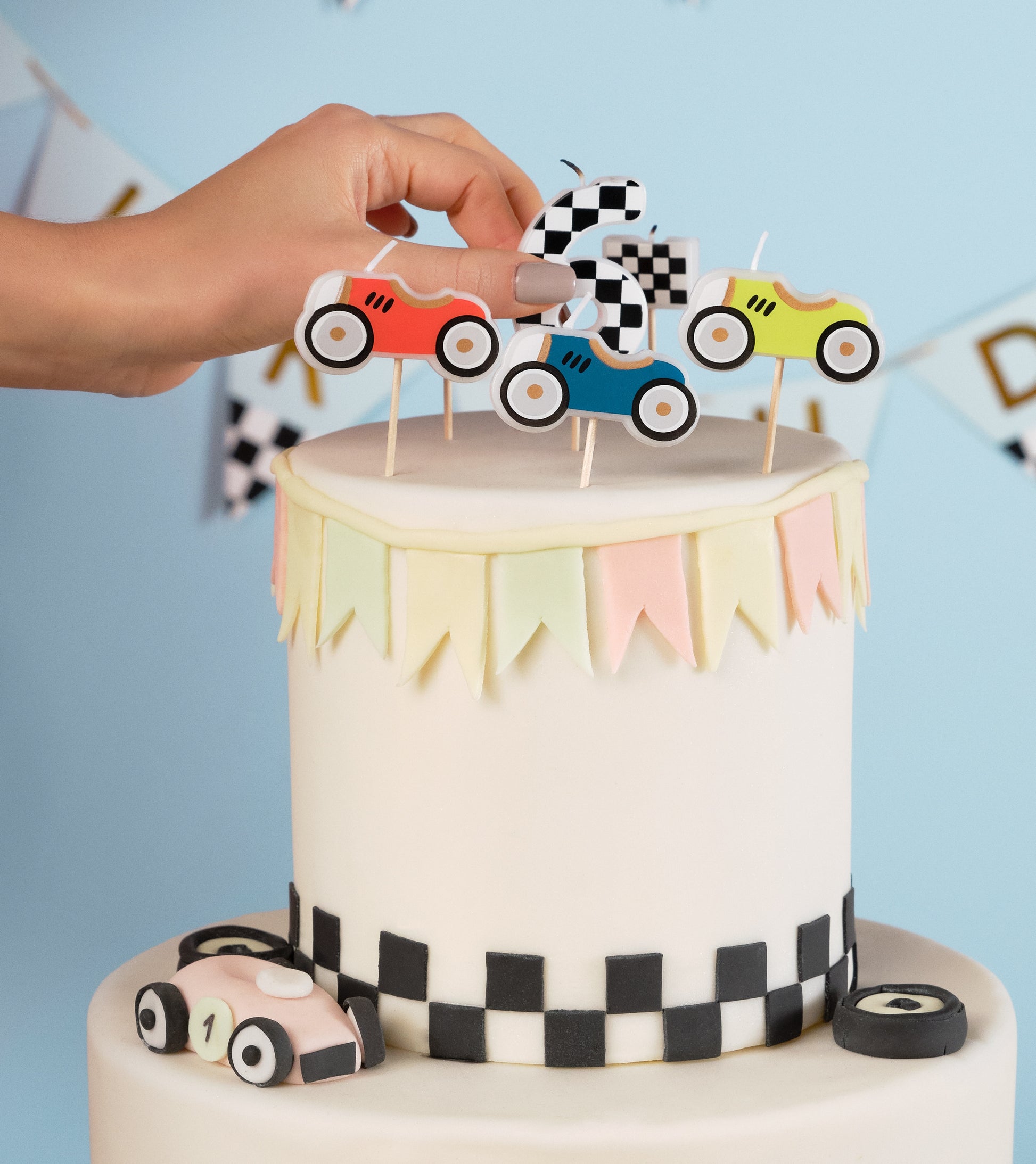 Rev up your car themed party with this set of 4 Car cake candles! These wheel checkered flags and vintage race cars will add a special touch to your little one's car themed birthday celebration. Great for cakes and cupcakes!