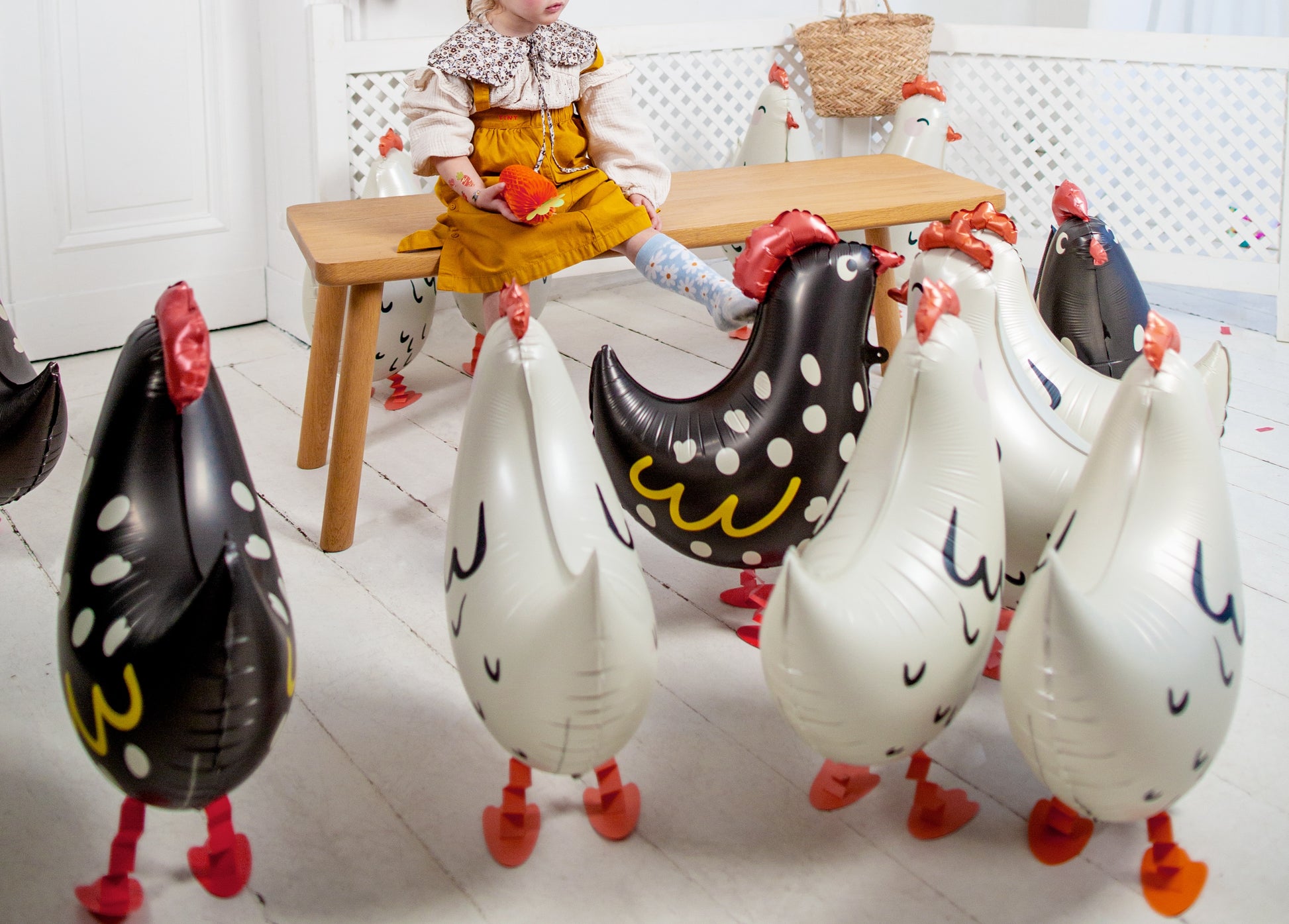 When filled with helium, the Rooster walks on air! This cute companion can be pulled on a string and is a lot of fun for kids and a low-maintenance pet for the whole family.
