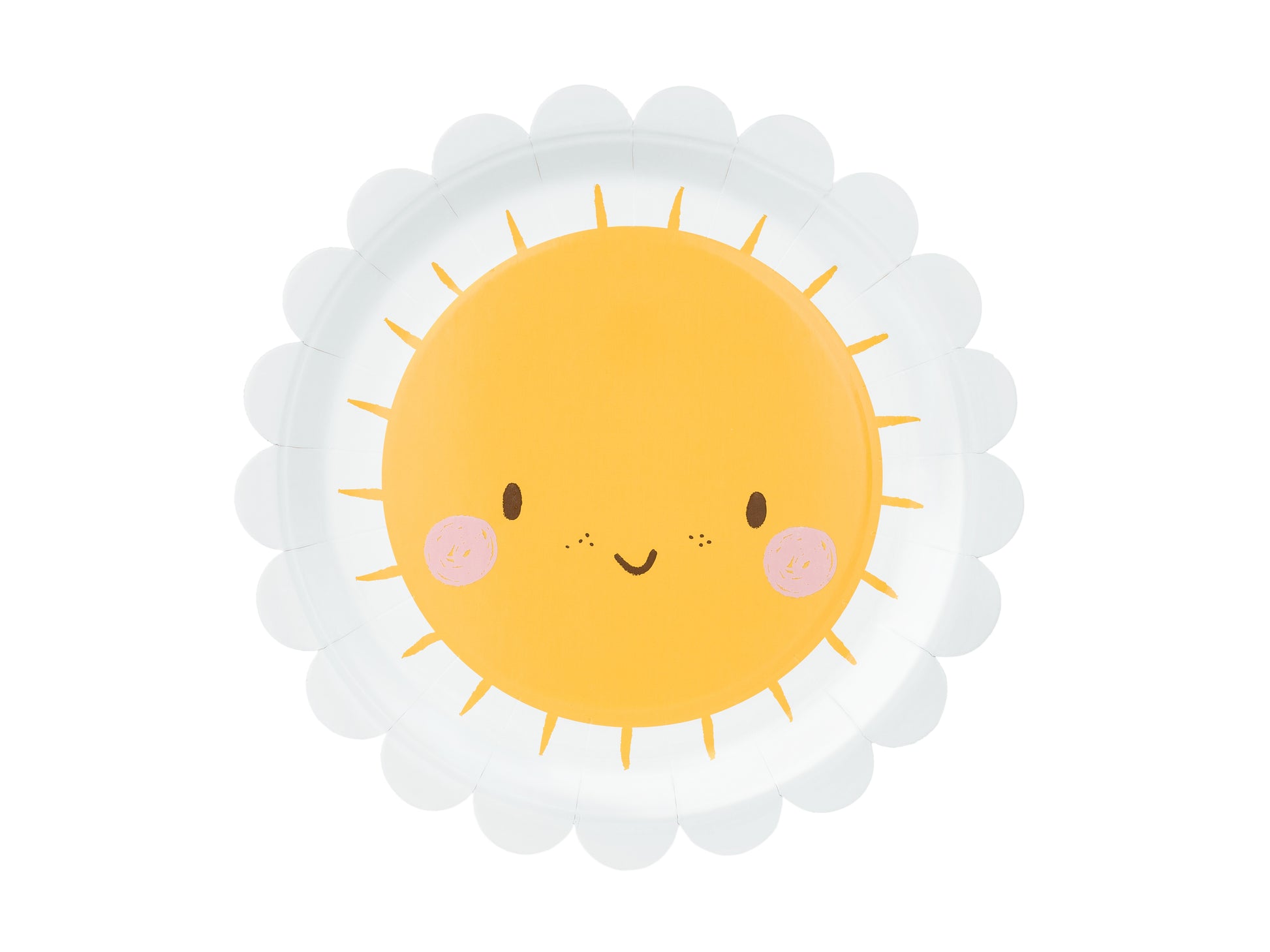Bring some sunshine to your party table with these adorable sun plates. Featuring a yellow smiling sun against a white cloudy plate with scalloped edges. They're perfect for a picnic theme party, a sunshine theme celebration!