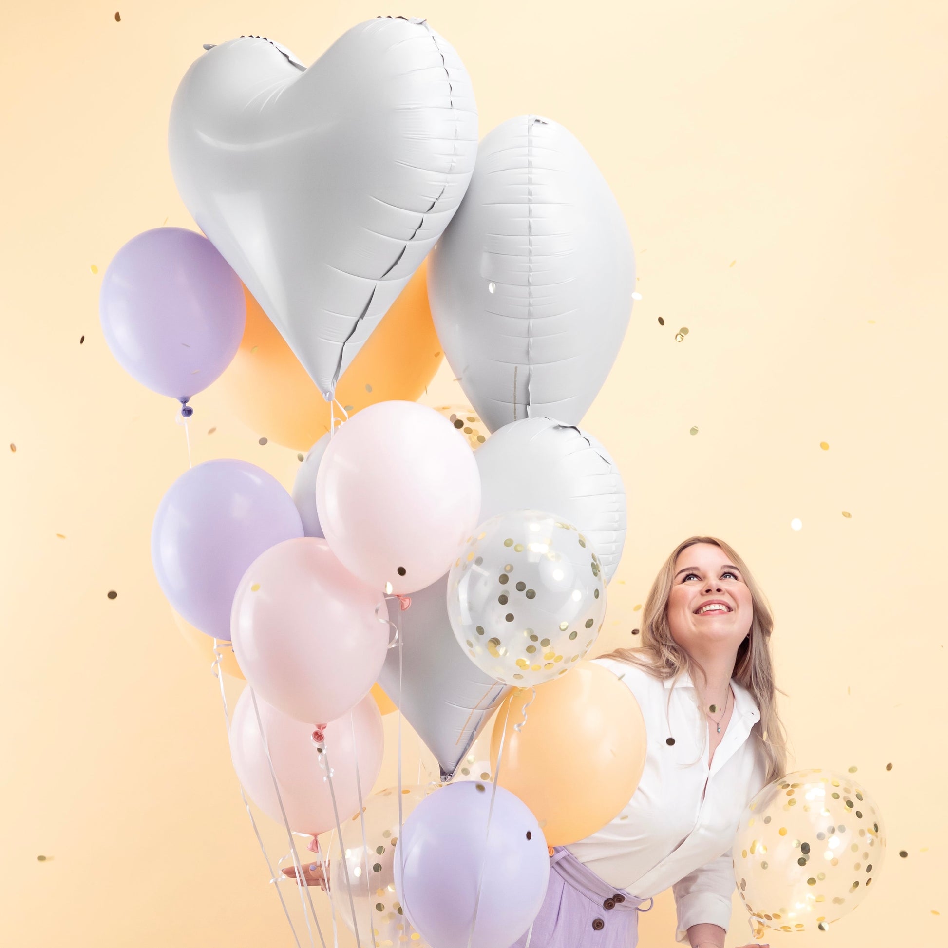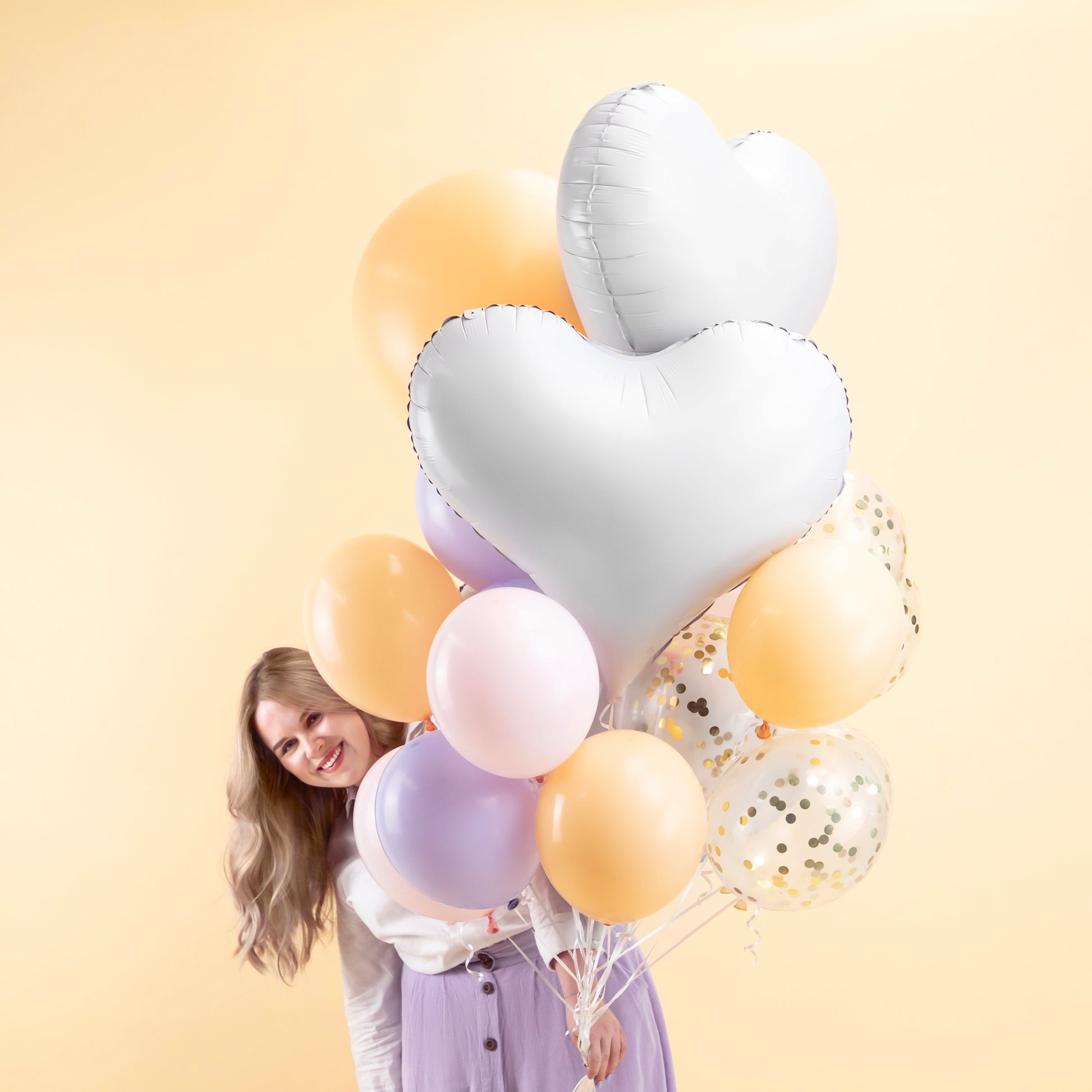This heart shaped white foil balloon is perfect for your Birthday, Valentine's Day or any other celebration! Mix and match with our other balloons to create a trendy balloon cloud or to create an adorable backdrop with it.